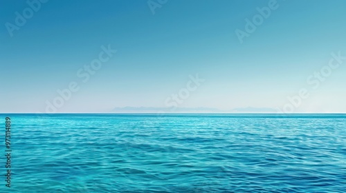 © Imsuniyah, Fototapeta premium Calm Sea with Distant Mountains