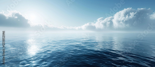© Sasils Production, Obraz premium Calm seascape under a bright sky with soft clouds during the early morning hours