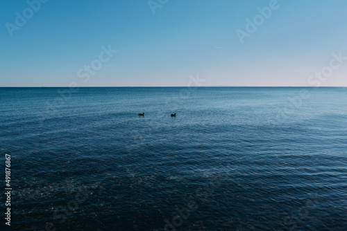 © Christian Horz, Obraz premium calm smooth sea against clear blue sky on sunny day, ocean background