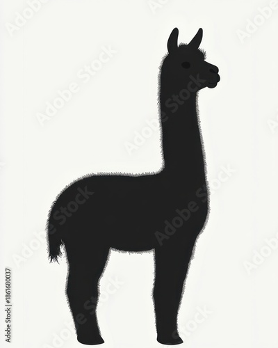 Fototapeta premium calm standing black alpaca silhouette in profile with soft fuzzy outline on plain white background