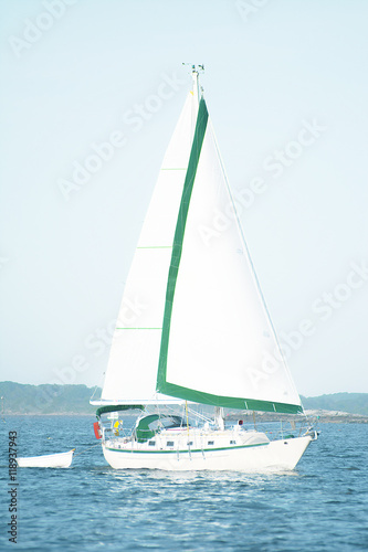 Naklejka premium Calm Summer Color Blue Boat on the Ocean