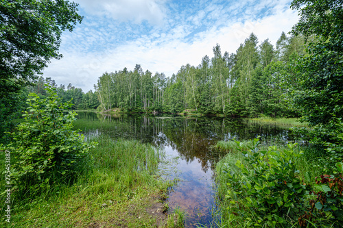 © Martins Vanags, Fototapeta premium calm summer day evening by the forest lake in forest