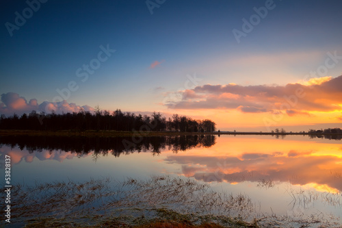 Fototapeta premium calm sunset over lake surface