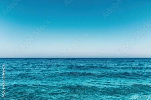 Obraz premium Calm turquoise ocean reflecting pristine blue sky on sunny day