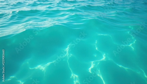 Obraz premium Calm turquoise ocean surface with gentle foam and subtle wave ripples,...