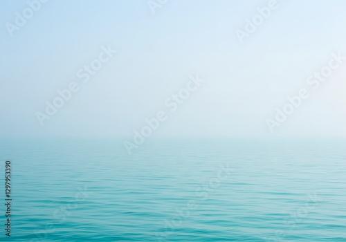 © zerostudio.id, Obraz premium Calm Turquoise Ocean Water with Light Blue Sky Minimalist Aesthetic