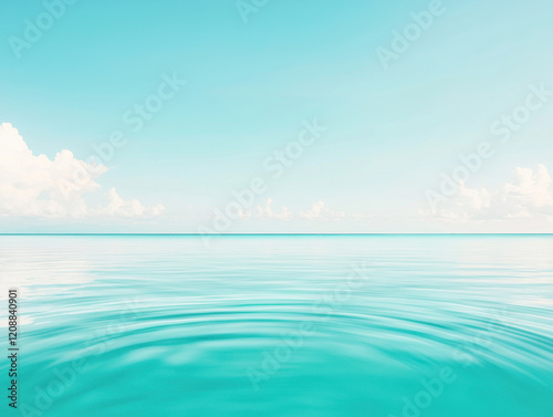 © Photo Graphic Stock, Obraz premium Calm turquoise ocean with ripples under clear sky and soft white clouds