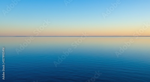 Obraz premium Calm water reflects a gradient sky with blue orange and yellow colors.