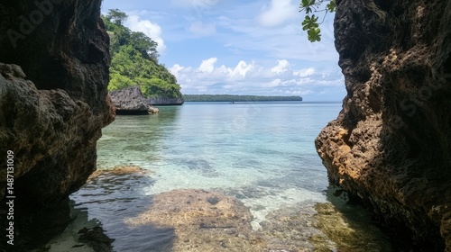 Fototapeta premium Calm waters and scenic caves tropical paradise nature photography coastal serenity eye-level view tranquility