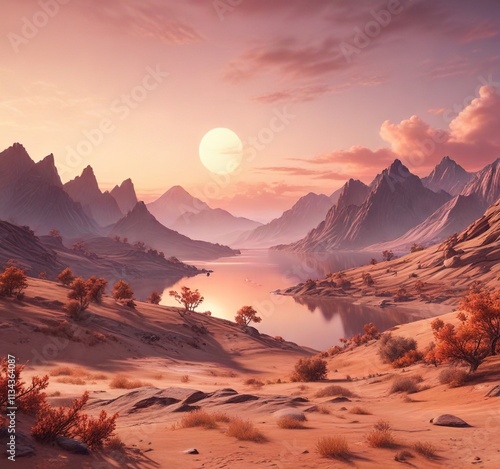 © methinee, Naklejka premium Calming peach landscape background with gentle shading, natural, gentle
