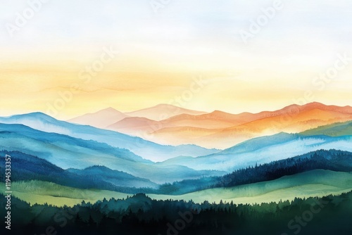 © Nakorn, Obraz premium Calming watercolor painting of rolling hills nature landscape vibrant gradients serene environment artistic viewpoint soothing concept