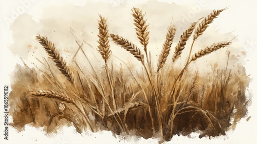© Yopi, Fototapeta premium Calming Watercolor Painting of Wheatgrass and Lavender