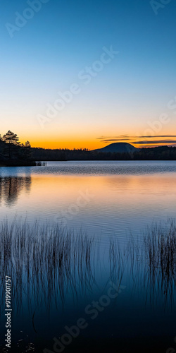 Fototapeta premium Calmness illustrated by a serene lake at sunset