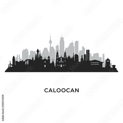 Naklejka premium Caloocan Skyline Vector with Philippines Cityscape.