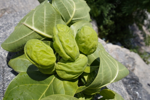 Obraz premium Calotropis procera is a species of flowering plant in the family Apocynaceae that is native to North Africa, Pakistan, tropical Africa, Western Asia, South Asia and Indochina. Fortaleza – Ceará, Brazi