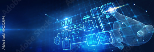 Fototapeta premium CAM Computer-aided manufacturing industrial technology automation concept. 3d...