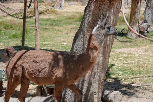 © celedonio, Obraz premium Camélido andino con pelaje de color café y en posición de perfil