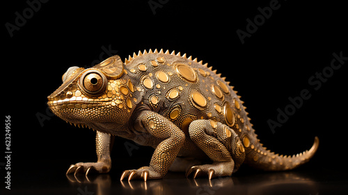 © Alexandre, Fototapeta premium camaleão ponta dourada preta