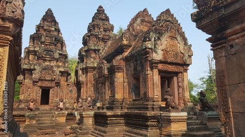 Naklejka premium Cambodia. Banteay Srei temple. A Hindu temple, built in the early 10th century from pink sandstone. With private funds. Siem Reap city. Siem Reap province.