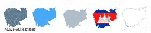 © Porcupen, Fototapeta premium Cambodia Map Set - Vector Solid, Contour, Regions, Flag, Pixels