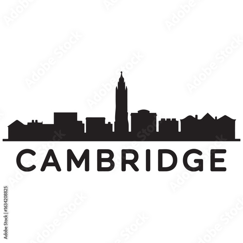 © Nargis, Fototapeta premium Cambridge skyline horizontal banner. Cambridge, Massachusetts. Vector template for your design. Vector black silhouette. with white background.