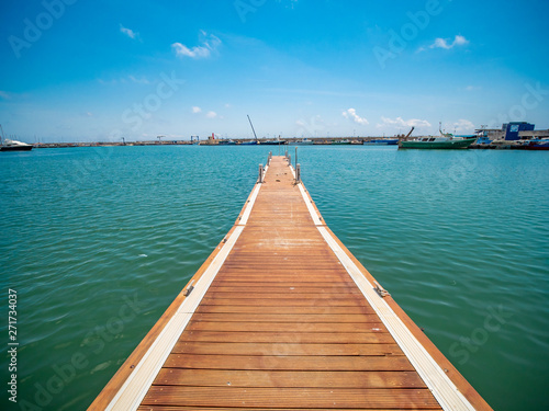 © Osvaldo Mussi, Obraz premium Cambrils pier that ends in the Mediterranean Sea, in Spain