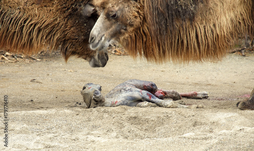 © S J Lievano, Fototapeta premium Camel baby just being born