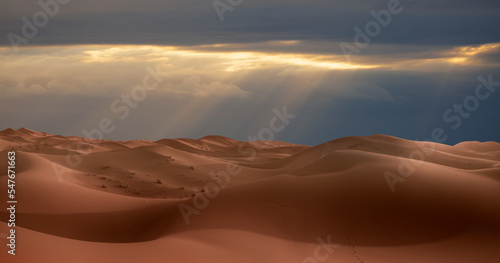 Naklejka premium Camel caravan in the desert at sunrise - Sahara, Morrocco