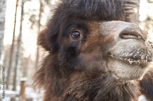Fototapeta premium camel in winter. nursery for various animals