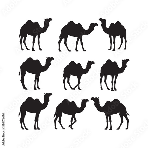 Naklejka premium Camel Silhouettes Collection, Camel Silhouette, Desert Animal Vector,...
