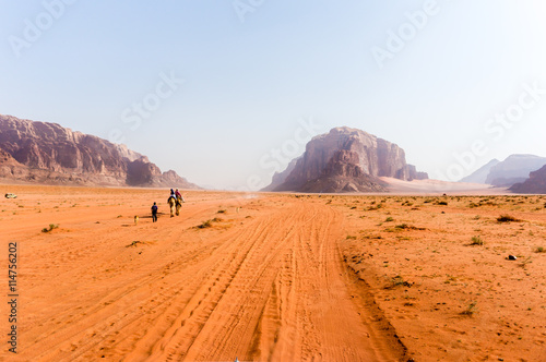 Naklejka premium Camel tour in Wadi Rum desert, Jordan
