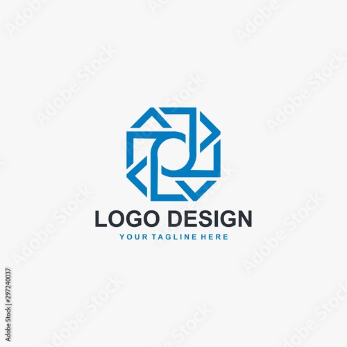 Naklejka premium Camera lens logo design vector. Outline photography abstract sign. Focus...