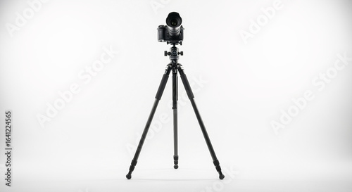© DesignsBurner, Obraz premium Camera on tripod photography equipment for photographers and videographers studio shot on white background