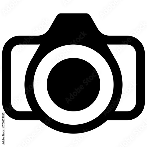 Obraz premium Camera. Outlined stroke vector icon with black-filled details.