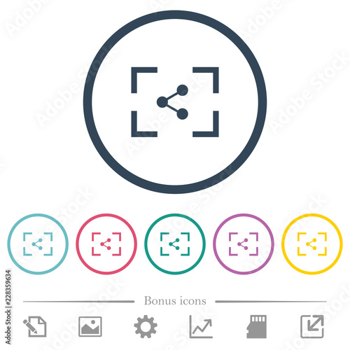 Fototapeta premium Camera share image flat color icons in round outlines