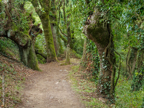 © lkonya, Fototapeta premium Camino track through lush green vegetation - Pintin, Galicia, Spain
