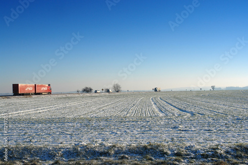 © hassan bensliman, Fototapeta premium camions sur route verglacée en ile de france