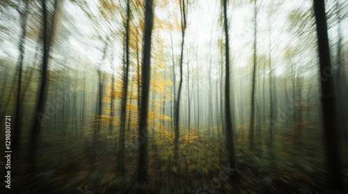 © Elena, Obraz premium Camouflage and adaptation in a misty forest during fall season for army training exercises