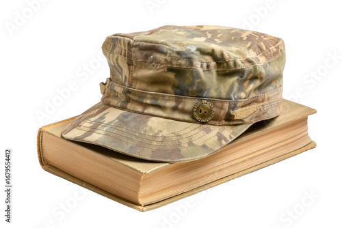 Fototapeta premium Camouflage Military Cap on Book ? Education Concept