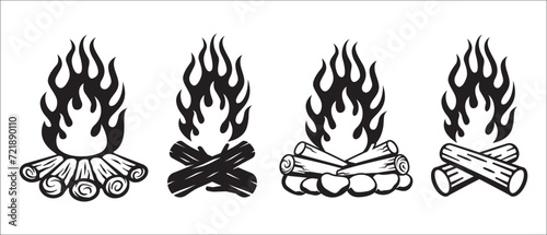 Fototapeta premium Camp fire vector set. Bale fire or bonfire illustration set. Burning wood vectors. Great for camping outdoor branding product. simple stock vector illustration.