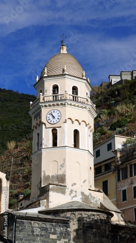 © Franxuc, Fototapeta premium Campanile della Chiesa di Santa Margherita di Antiochia. Comune di Vernazza. La Spezia