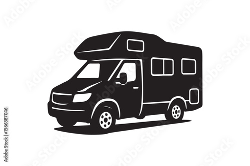 © MstAsma, Naklejka premium camper van silhouette vector art illustration on white background