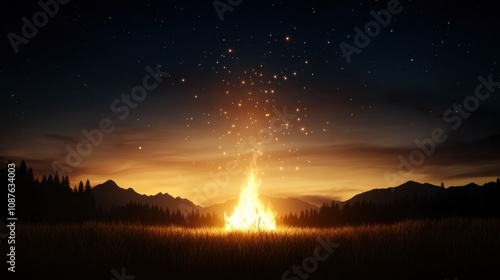 Fototapeta premium Campfire gathering under starry sky nature photography outdoor nighttime...
