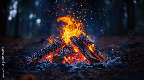 © KHOLIS, Naklejka premium Campfire in Dark Forest (4)