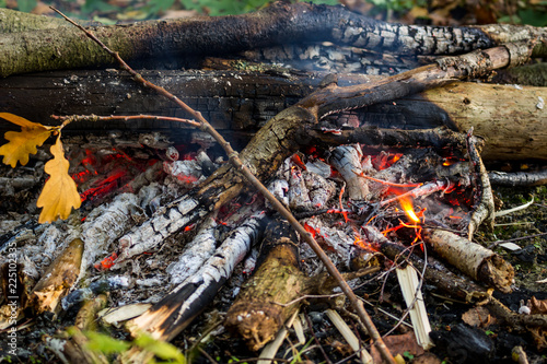 © PhotoChur, Obraz premium Campfire in the forest, close