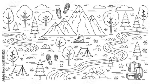 Obraz premium Camping and outdoor adventure scene with mountains and trees