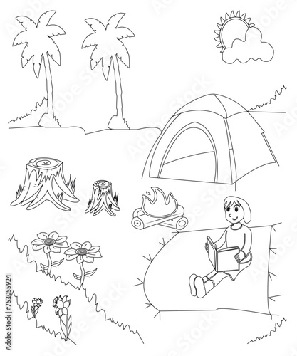 Obraz premium camping coloring book page for kids