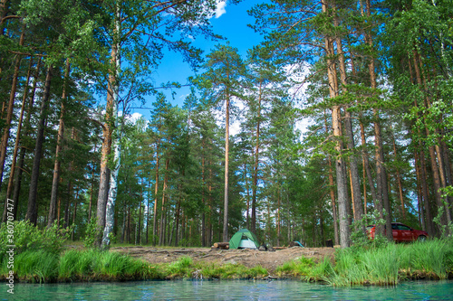 © Анна Горбатенко, Obraz premium Camping kit for a rest with an overnight stay.