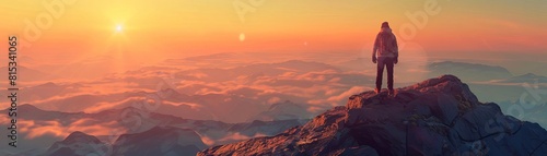 Naklejka premium Camping on a mountain flat design top view sunrise view theme 3D render...