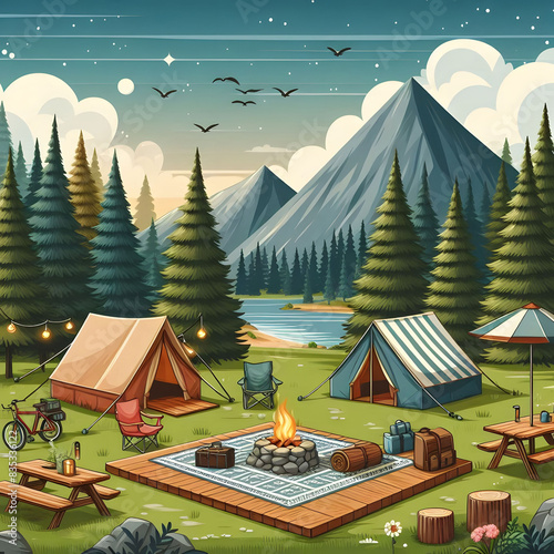 Fototapeta premium camping scenery - 캠핑 풍경. Generative AI